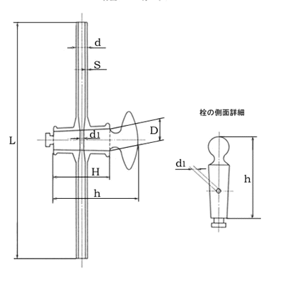 栓の握り部の長さは、線の長さHと約同じ寸法とする。 |