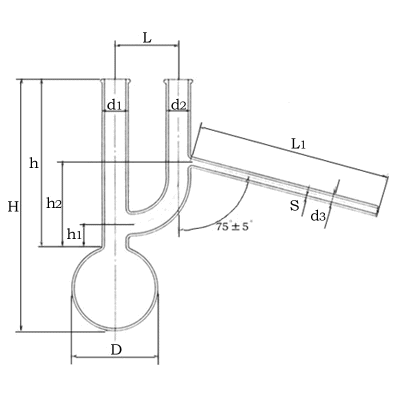 クライゼンフラスコの呼び方は、名称及び呼び容量による。 |