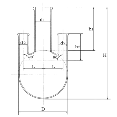 三口丸底フラスコの呼び方は、名称及び呼び容量による。 |