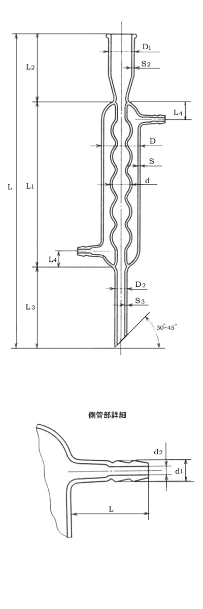 側管は、同一側に付けるか、又は屈曲させることができる。 |